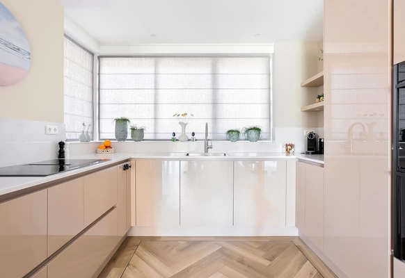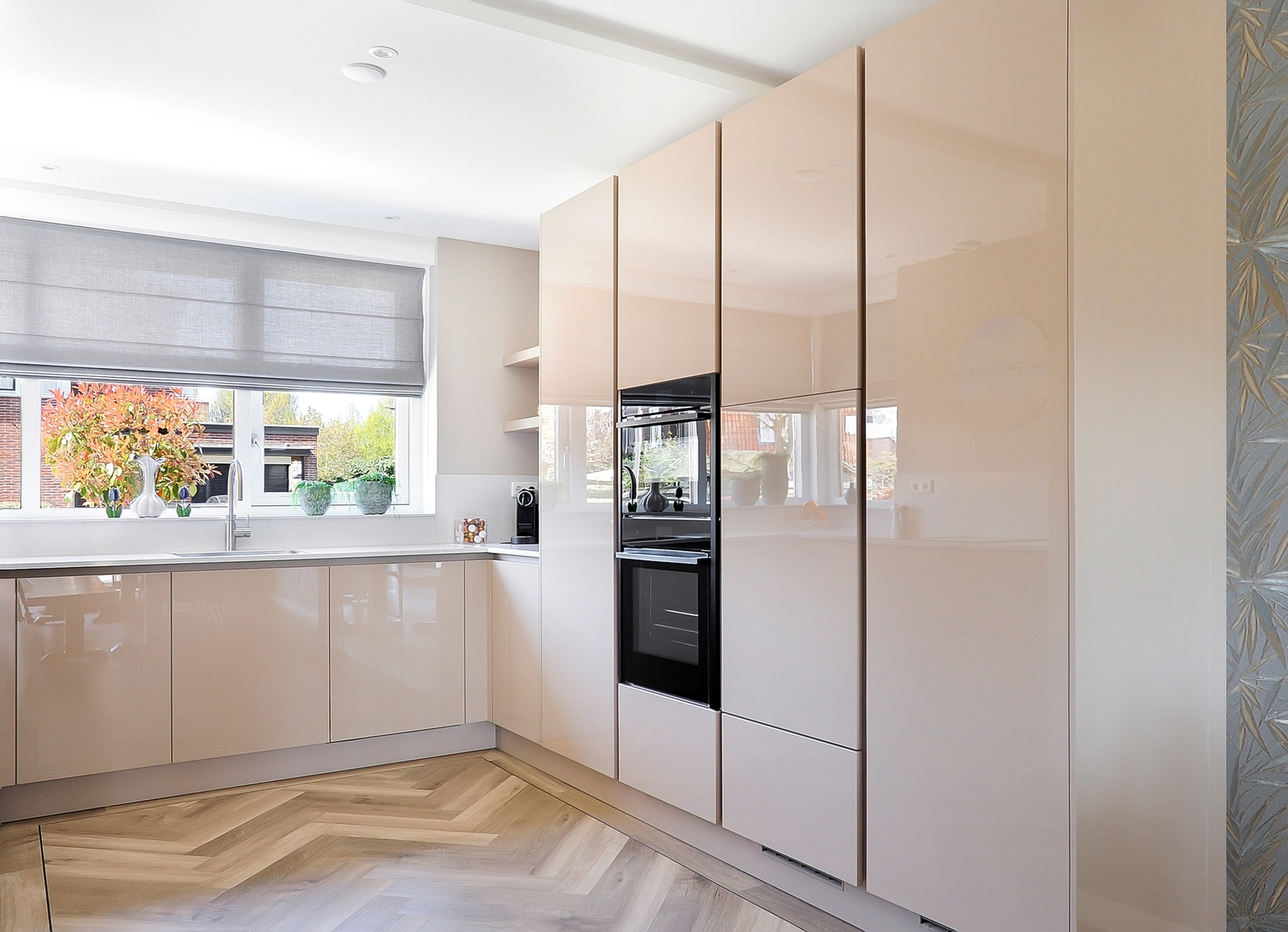 Voor familie Spierdijk in Hillegom mochten we deze prachtige Ballerina-keuken in Light Nude Hoogglans realiseren, van ontwerp tot uitvoering. Het werkblad in Celeste White Polished van Dekker Zevenhuizen en de Neff apparatuur, inclusief kookveldafzuiging en Quooker RVS, maken het geheel compleet.