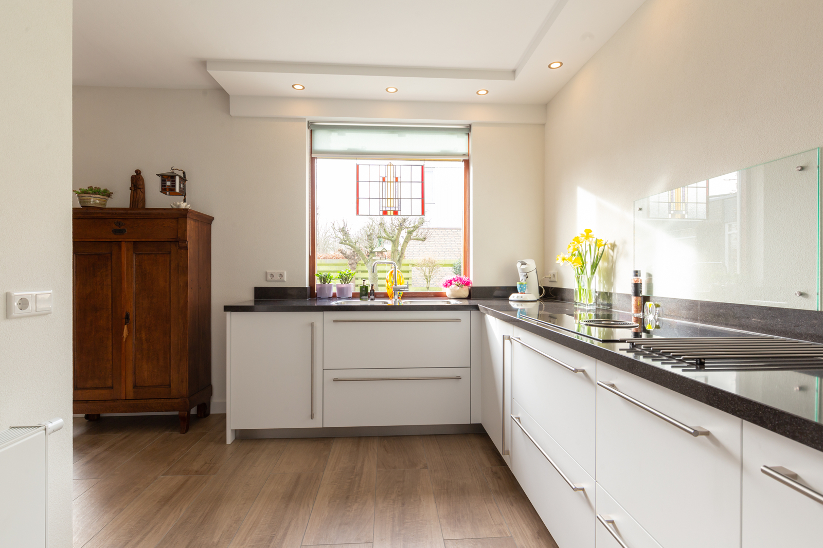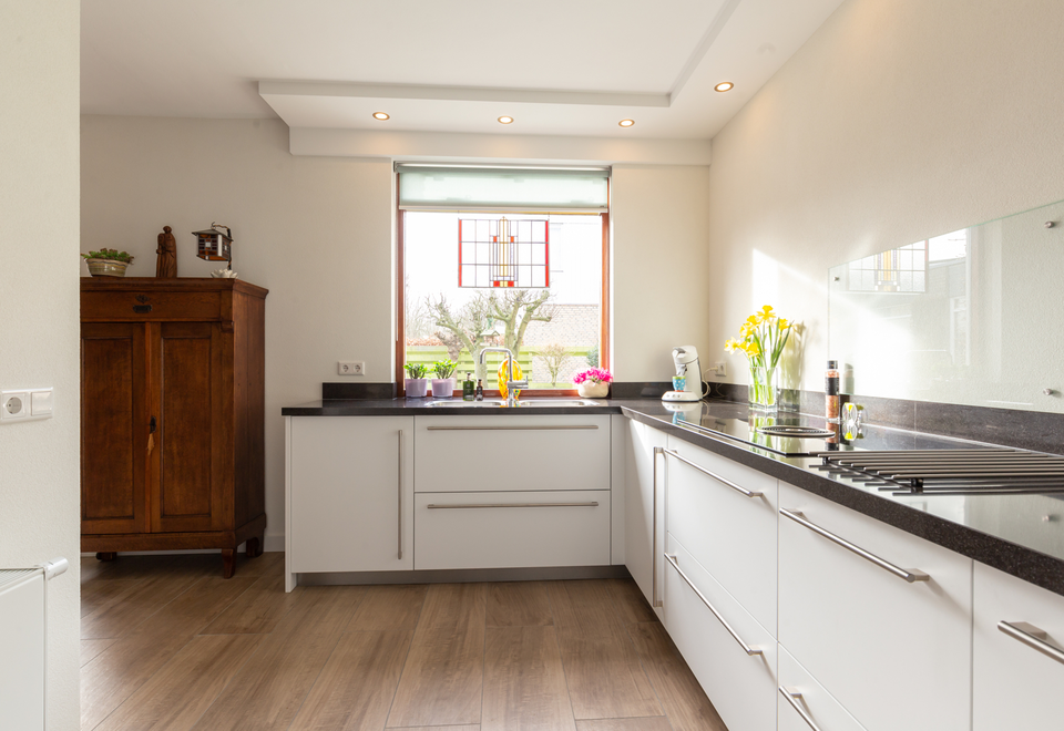Bij dit project hebben we de gehele begane grond aangepakt. De woonkamer, keuken, werkkamer, hal en toilet zijn flink opgeknapt. Ook is er een kunststof kozijn geplaatst en is de sfeerverwarming gemoderniseerd door collega bedrijven. De ruimtes zijn een stuk lichter geworden, en het oogt meteen nog groter! De klant kan hier weer jaren van genieten.